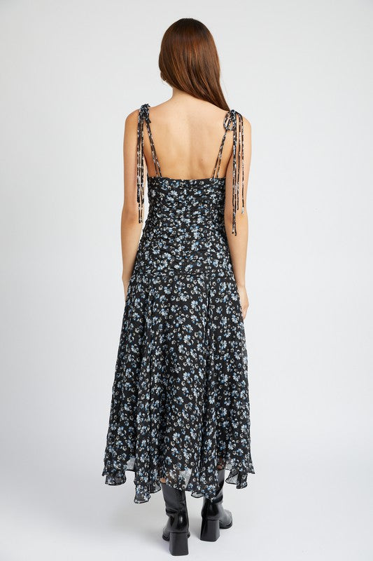 RUCHED DRESS WITH ANGEL EMPIRE WAIST DETAIL